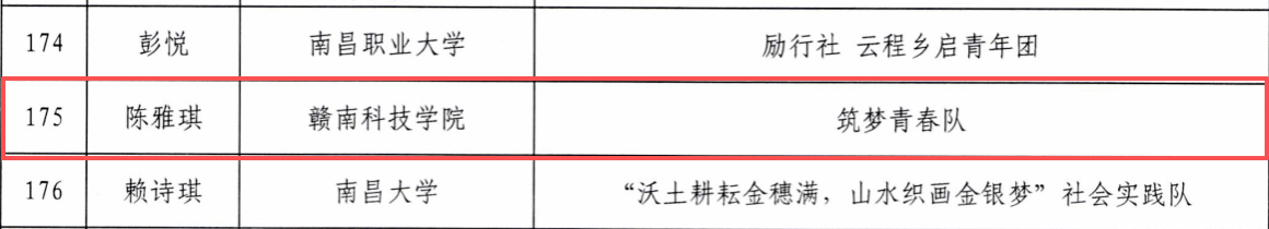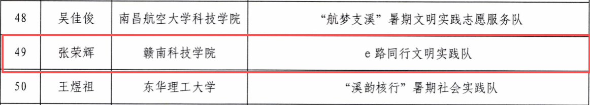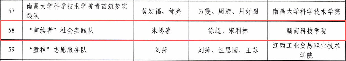 经济管理学院团队创作的《于都中央红军长征出发地旧址群活化及其促进长征精神育人机制研究》荣获调研报告一等奖;“言续者”社会实践队获评优秀团队;信息工程学院张荣辉、陈雅琪,文法学院严泉获评优秀个人;徐超、宋利林老师获评优秀指导教师。