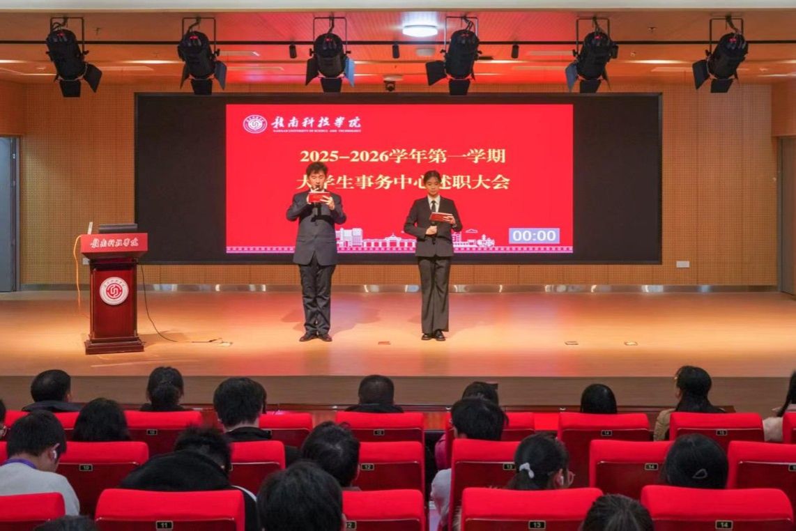 本网讯:为进一步加强学生干部队伍建设,明确学生干部职责与使命,提升学院学生工作效能。1月6日下午,2025-2026学年第一学期大学生事务中心述职评议会在大学生活动中心报告厅顺利举行。党委学生工作部全体教师以及全体学生干部共200余人参加。