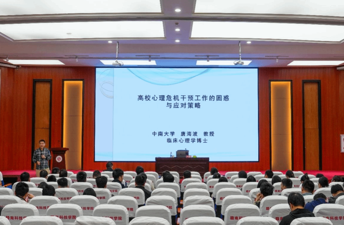 3月23日,我校在图书馆学术报告厅举办了2026年第一期辅导员、班主任专题业务能力培训会。本次培训会的主题为“大学生心理危机干预中面临的困惑与应对策略”,由中南大学心理健康教育与咨询专家、临床心理学博士唐海波教授主讲。各学院辅导员、班主任共计180余人参加此次培训。