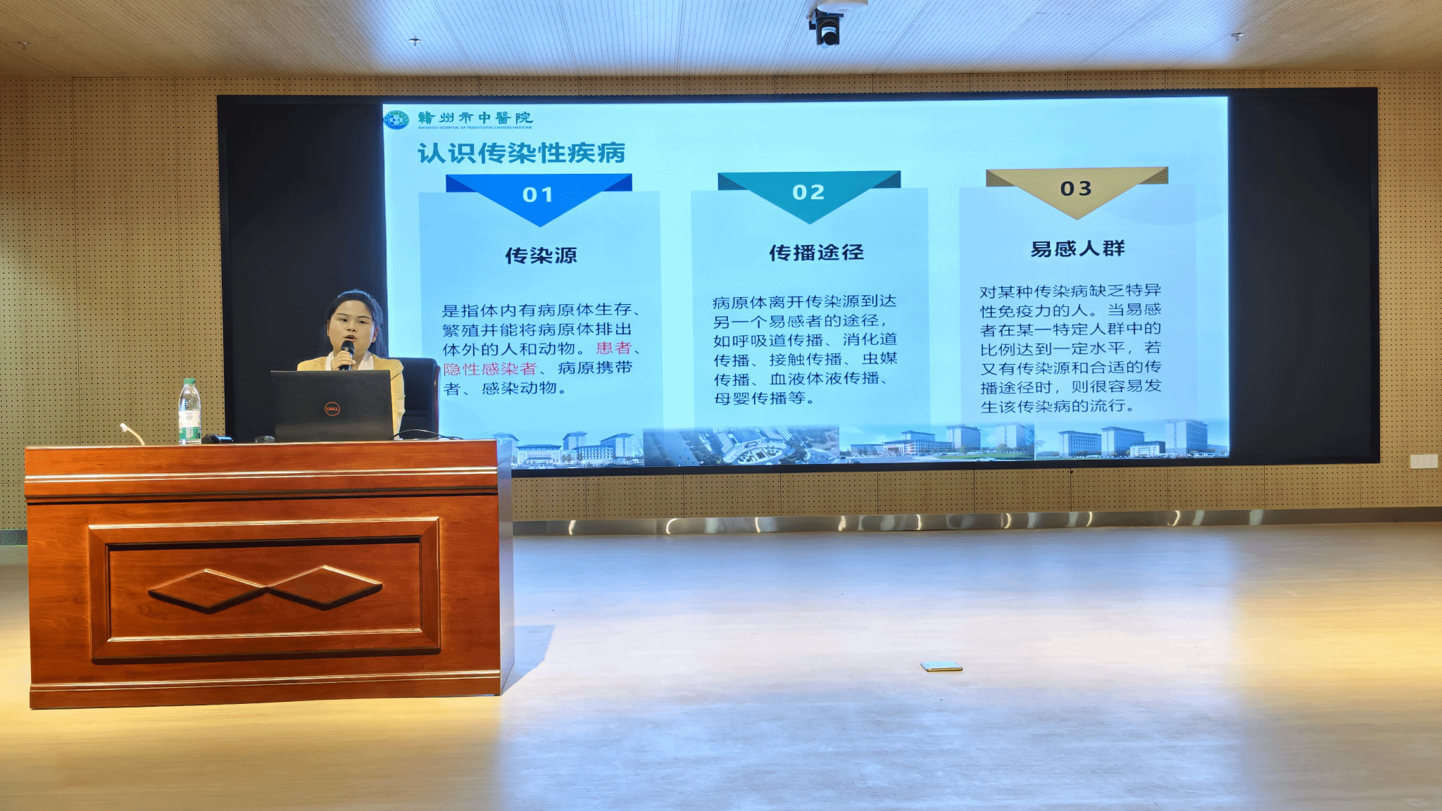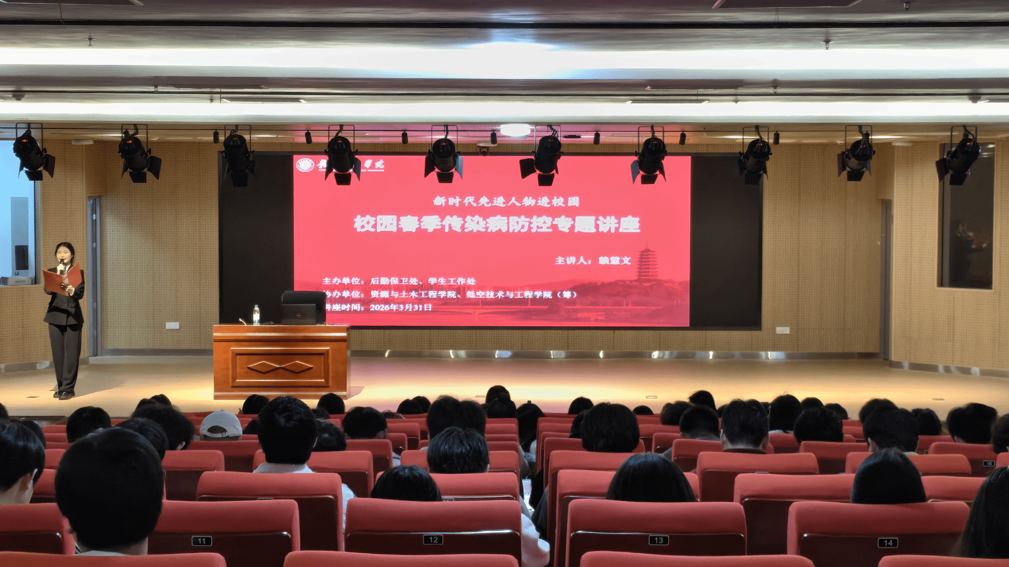 3月31日晚,我校特邀2023年度、2025年度赣州市优秀感控工作者、赣州市中医院感染防控与传染病监测专家赖慧文,在大学生活动中心报告厅开展“新时代先进人物进校园:校园春季传染病防控”专题讲座。资源与土木工程学院党委委员、学工办主任涂黎明,后勤保卫处教师代表、辅导员、各学院班长及生活委员、资源与土木工程学院团委学生干部共计300余名师生聆听。此次讲座由后勤保卫处、学生工作处联合主办,资源与土木工程学院承办。